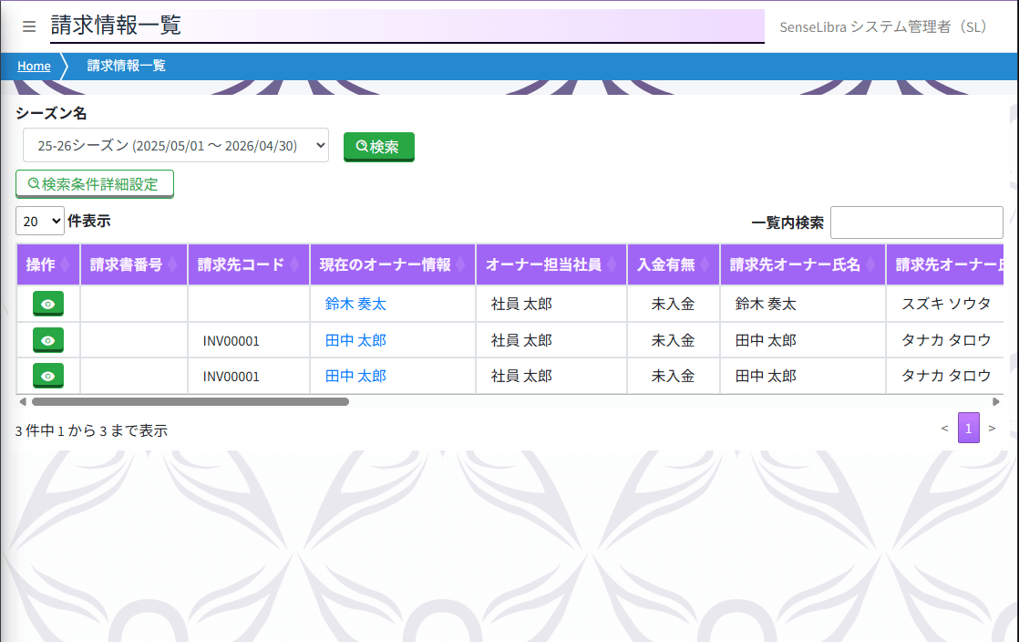 請求情報を一覧表示します。