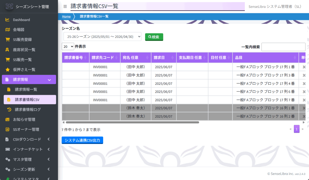 請求情報のCSV出力を行います。